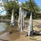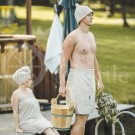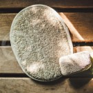Natūralaus lino ir medvinės, 50x70 cm ir 80x145 cm dydžio, vonios rankšluostis. Gamybos metu suminkštintas ir susodintas lininis rankšluostis gerai su..